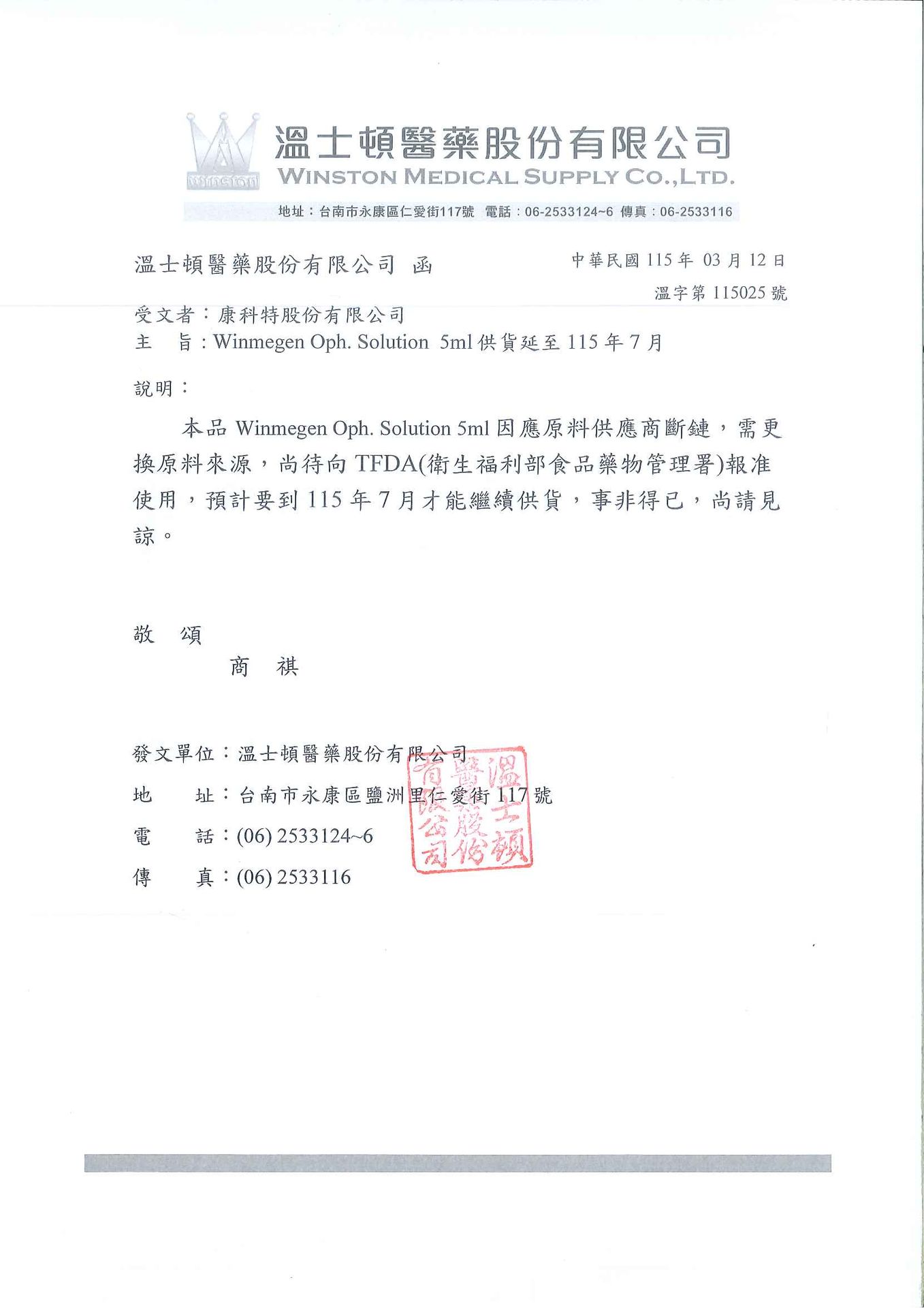 公告 2026/03/12 溫美眼眼藥水暫停供貨通知